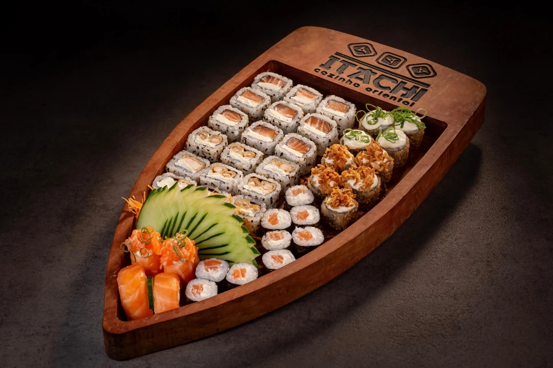 02 joy salmão, 02 niguiri salmão, 09 uramaki camarão empanado, 09 uramaki salmão Philadelphia, 09 hossomaki salmão Philadelphia, 09 hot rolls. **Valor promocional exclusivo para pedidos via site** **Foto ilustrativa, não vai na barca**